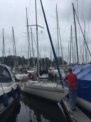 Nach gemeinsamem Aufwärmen im Hafencafé Gohren, um die letzten Schauer abzuwarten, haben es sich die erfahrenen Regatta-Segler nicht nehmen lassen, doch noch „in See zu stechen“.